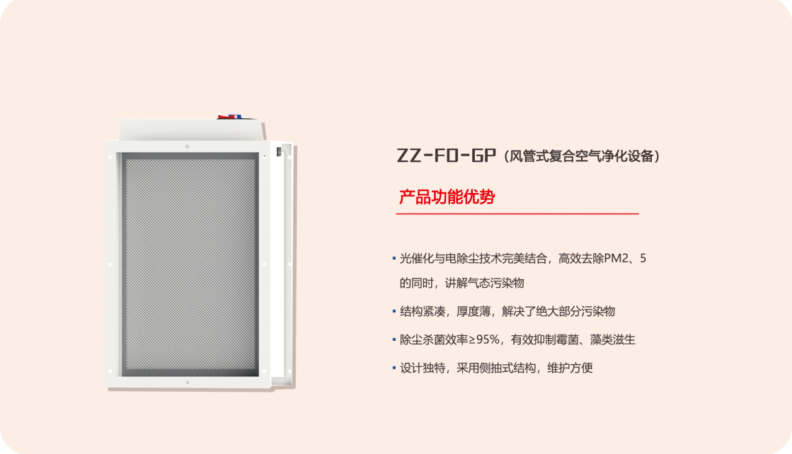 (二)风管式复合空气净化装置:“高压静电捕捉+纳米光催化分解”双重保障